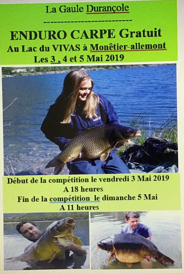 Les 3, 4 et 5 Mai 2019 l’association de pêche : « la Gaule Durançole » organise un week-end de compétition de pêche avec le 21ème Enduro Carpe du Lac du VIVAS à MONETIER-ALLEMONT.