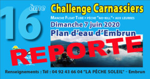 CHALLENGE FLOAT TUBE CARNASSIERS 2020 - 7 JUIN 2020. Dimanche 7 Juin à l'occasion de la Journée Nationale de la Pêche, se déroulera le 16eme CHALLENGE CARNASSIERS en Float-tubes sur le plan d'eau d'Embrun, organisé par le magasin « La pêche Soleil » et la Fédération de Pêche des Hautes-Alpes. Compétition, conviviale et ouverte à […]