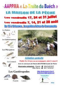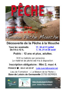 Découverte de la Pêche à la Mouche. Pour un public de 12 ans et plus ainsi qu’adultes. Le matériel de pêche est mis à disposition. Tarif 30 € tout compris. Inscription Franck : 06 41 45 25 97